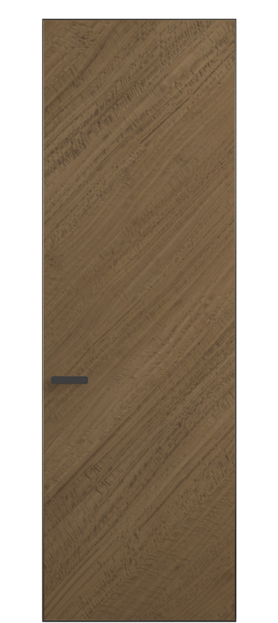 Полотно Рифт в скрытом алюминиевом коробе становится полноценным элементом декора. В коллекции представлено 9 моделей дверей в высоте до 3 метров. Рисунок раскладки шпона варьируется от простого до сложного. «Рубашка» для каждого полотна подбирается вручную по цвету, текстуре и фактуре.